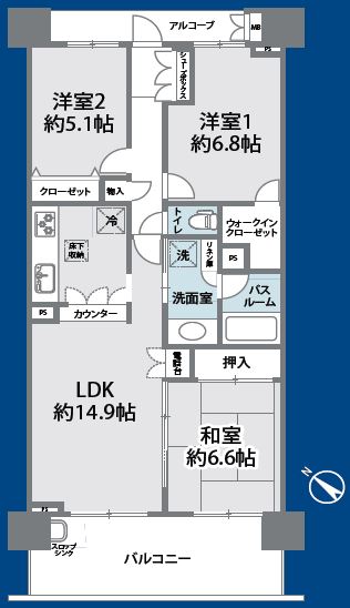 南西向き/ 3LDK/76.23㎡ /JR京葉線 蘇我駅 徒歩12分