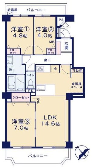 南西向き/3LDK/ペット飼育可/74.06㎡ /JR総武線「幕張駅」徒歩11分